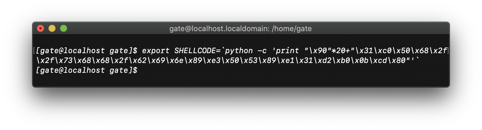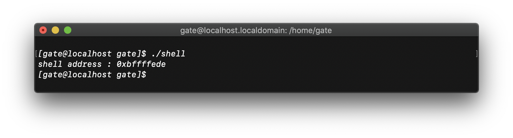 shellcode의 주소가 0xbfffede 인 것을 확인했다. 이제 이를 바탕으로 다시 payload를 짜서 쉘을 따보자.