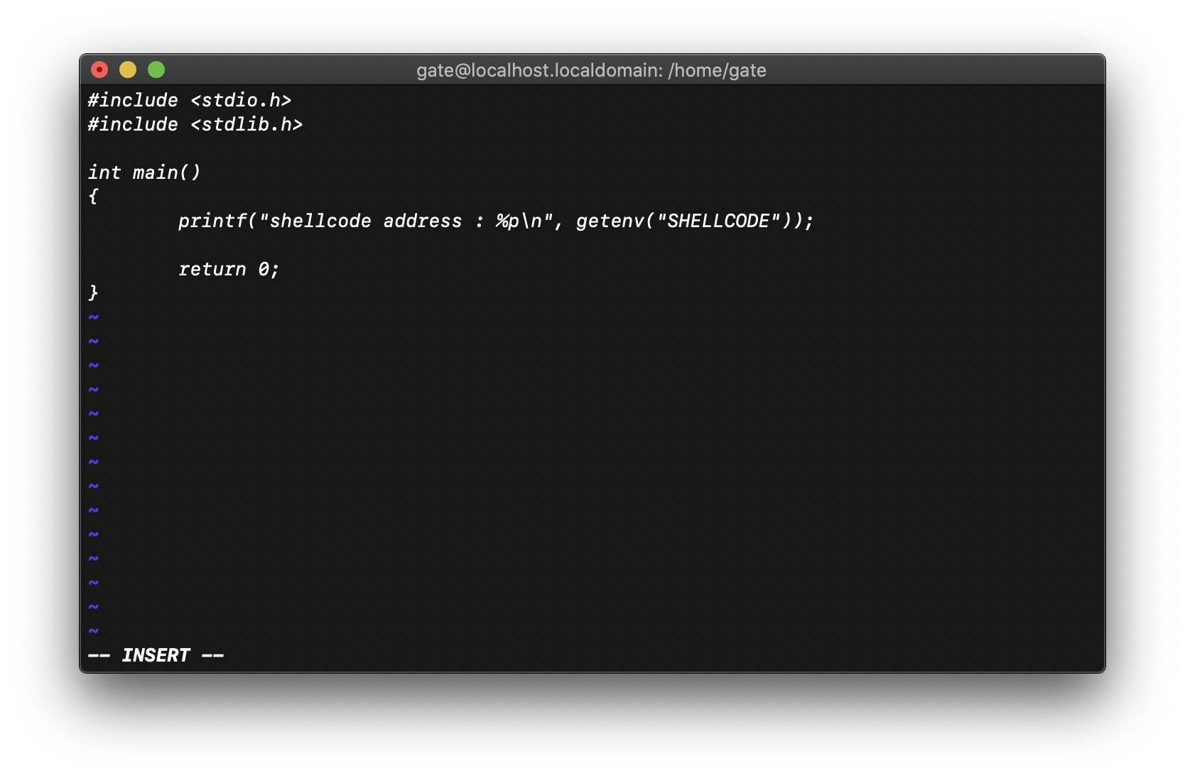 그래서 ret 주소를 export한 shellcode의 주소로 바꾸자. 우선 shellcode를 export 해주고 shellcode의 주소를 얻어내는 프로그램을 작성하여 실행하자.