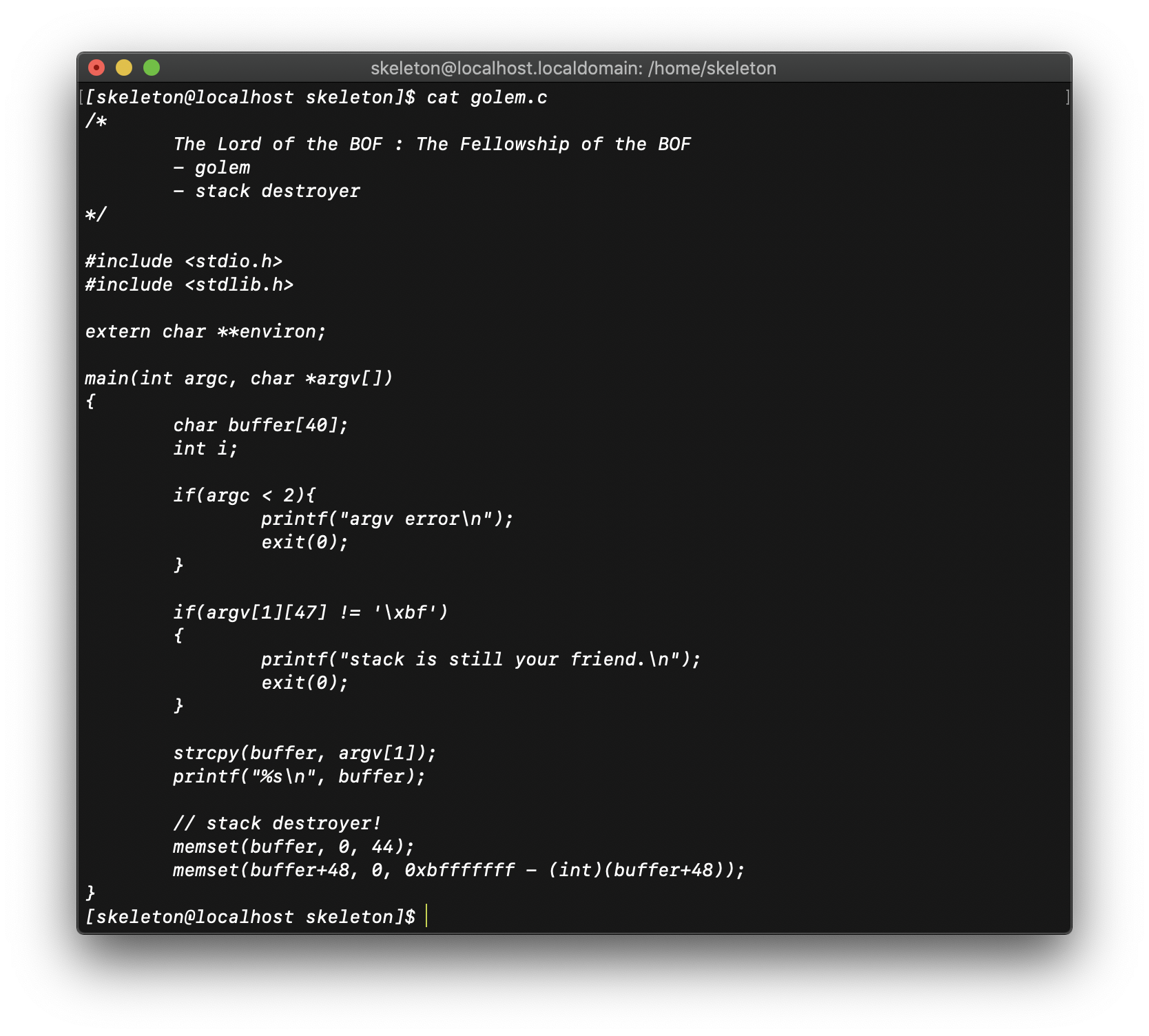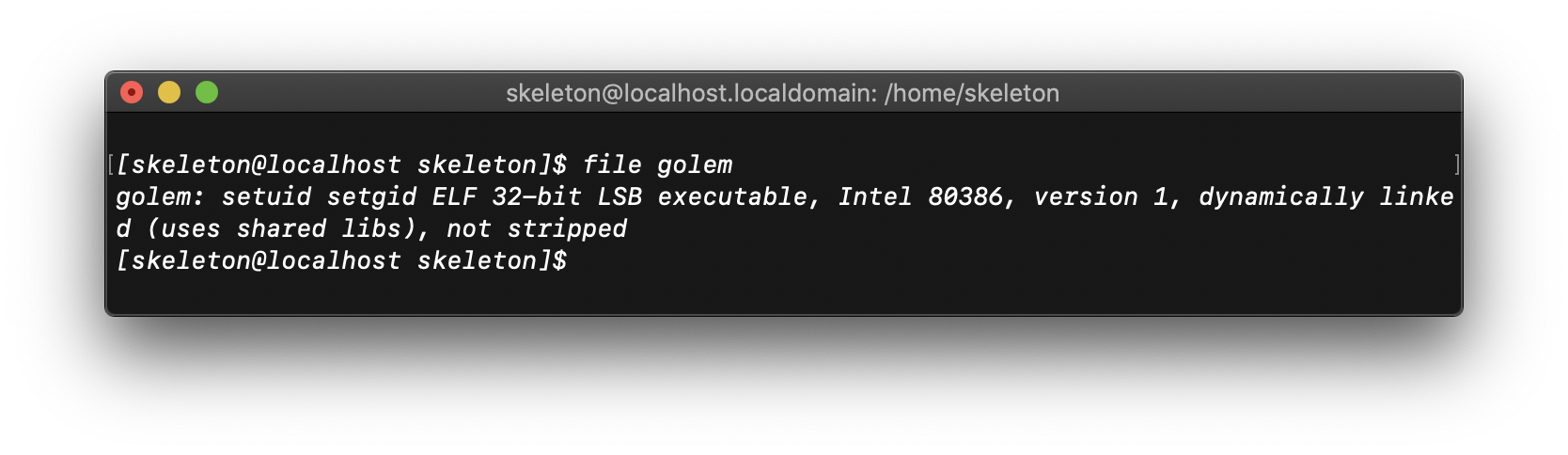 우선 golem 프로그램이 공유 메모리를 사용하는지 알아보자. file 명령어로 판단할 수 있다.