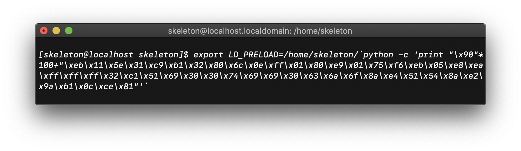 - 컴파일된 파일을 LD_PRELOAD 의 이름으로 export 해주는데, 여기서 ‘LD_PRELOAD=절대경로’ 의 방식으로 지정해준다.