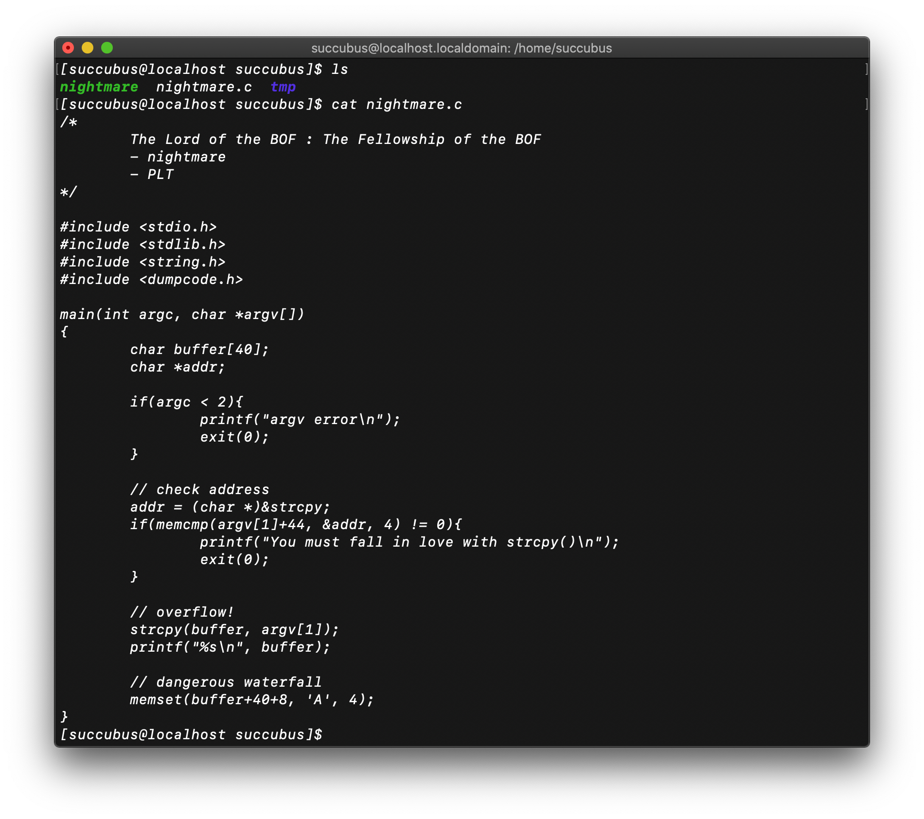 gdb 분석 결과 -> buffer의 시작 주소를 strcpy 함수의 RET 값으로 변조하려고 했으나 계속하여 1byte씩 오류가 발생하는 바람에 쉘은 따지 못하였다. LOB 파일에 오류가 생겼는지는 모르겠지만 정확한 이유는 모르겠다. 어쨋든 문제를 해결하는 알고리즘에는 오류가 없으므로 정상적인 환경에서는 쉘이 따질 것이다.