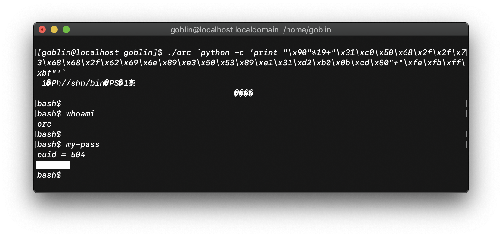 따라서 44bytes(buffer + sfp) 만큼 NOP + shellcode로 덮고 그 뒤에 ret 주소를 buffer의 시작 주소로 하면 될 것 같다.