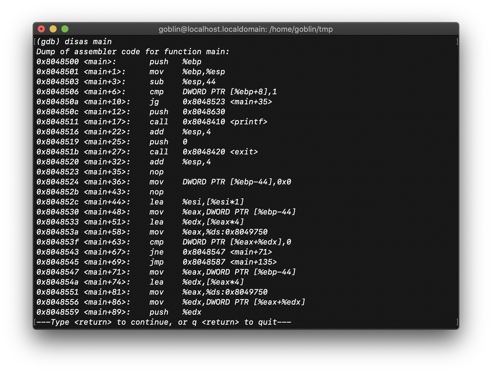 이제 gdb를 통하여 메모리 구조를 살펴보자.