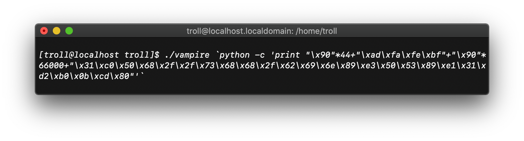 일단은 버퍼의 시작 주소가 0xbffefaad 임을 알 수 있다. 우선 이 주소를 넣어 쉘을 따보자.