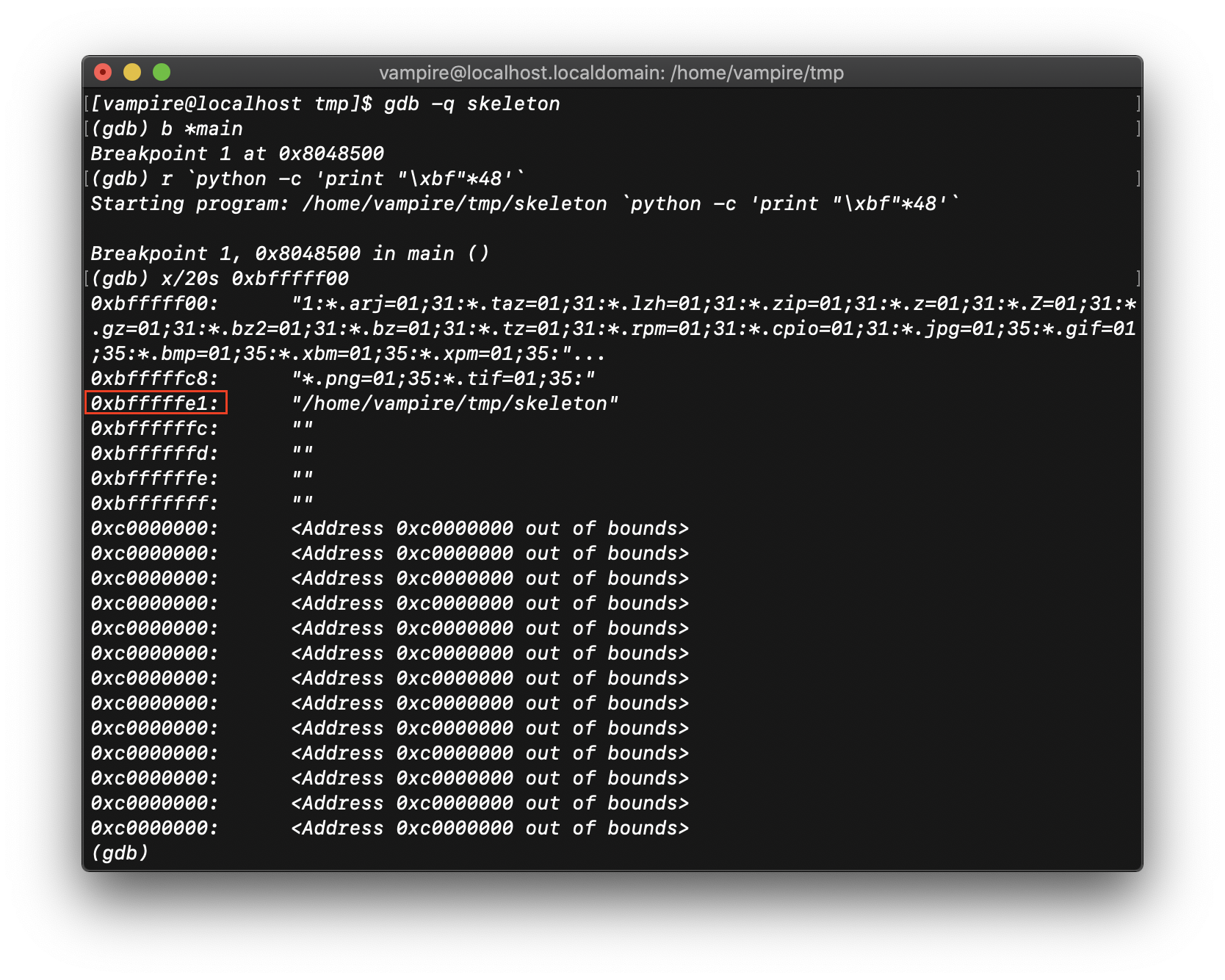 argv[0] 의 주소는 다음과 같다. → 0xbfffff03