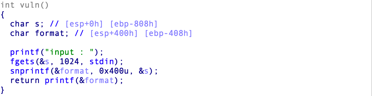 - GOT Overwrite 가 되었으면 printf(&format) 코드가 실행될 때 쉘실행 함수가 실행될 것이다.