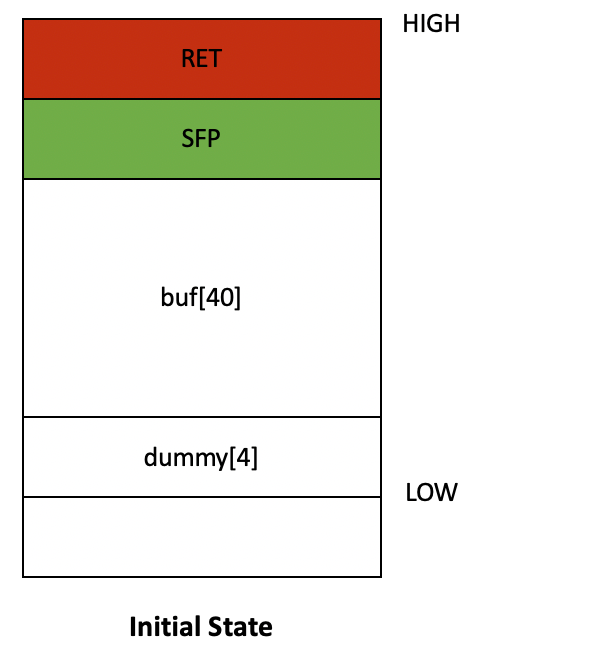 - "\x40"로 시작하는 영역, 즉 라이브러리 함수의 주소를 RET 주소로 사용할 수 없음