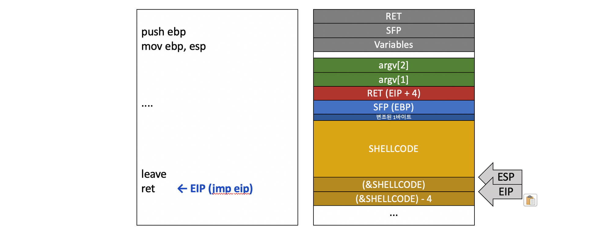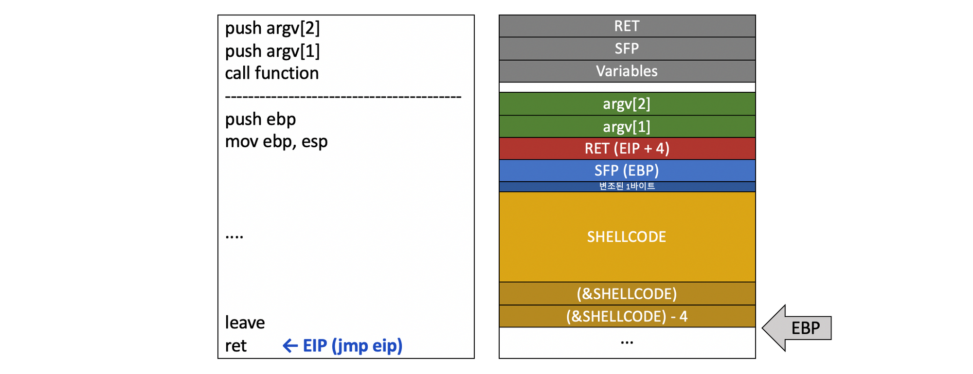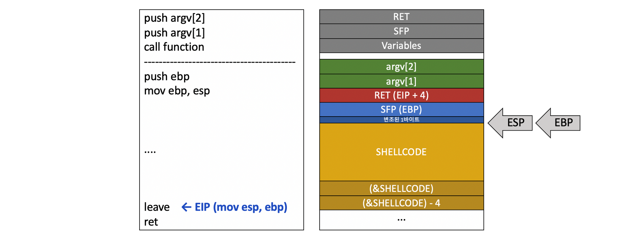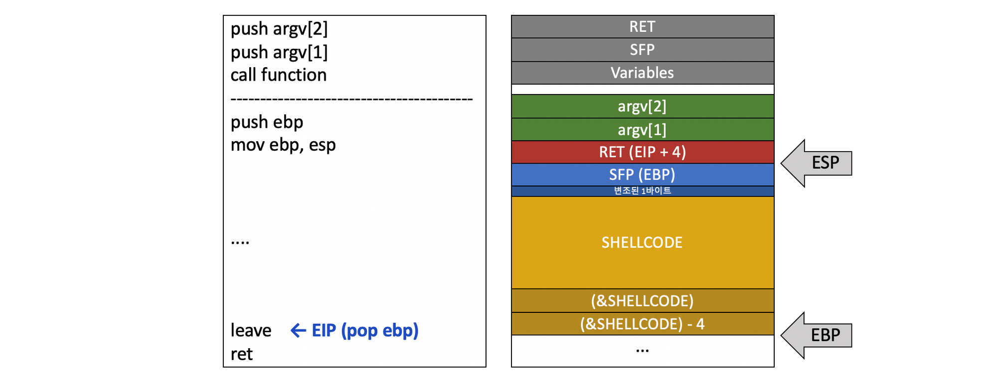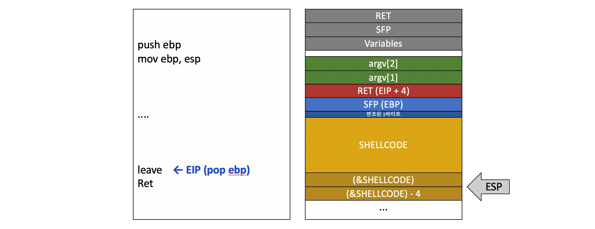 일반적인 스택의 상황이 아닌 SFP 의 마지막을 변조한 상태의 스택을 나타낸 것이다.