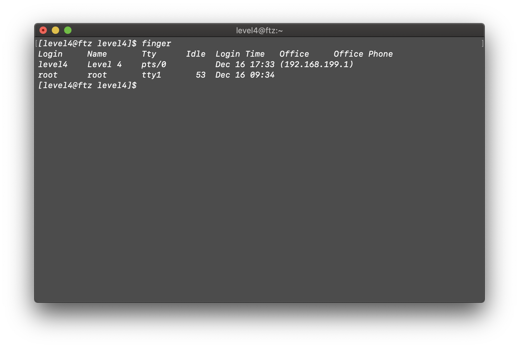 - finger [user] : finger는 로컬에 접속