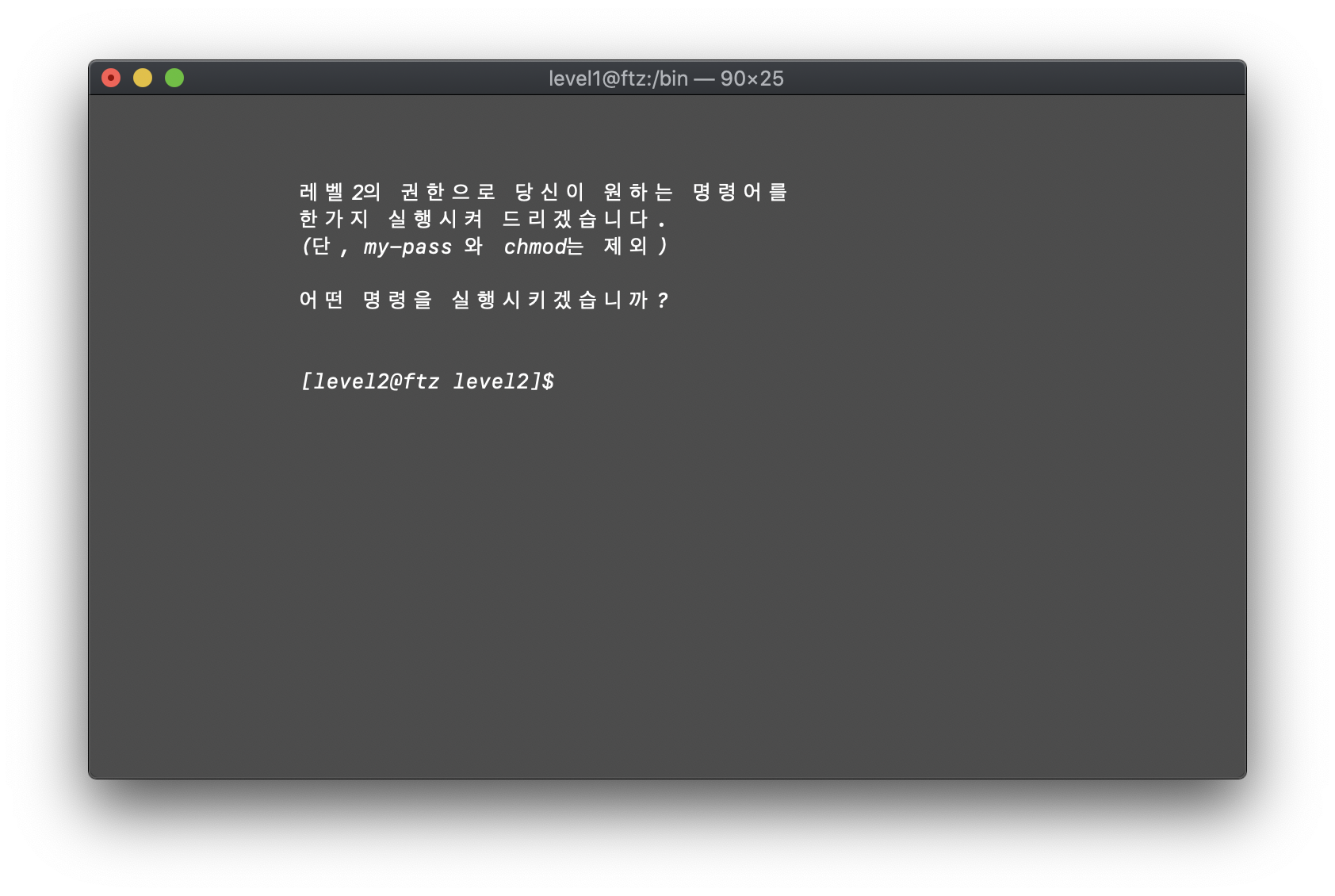 my-pass 가 막혀있다. 일단 level2의 권한을 갖고 있는 상태이므로 쉘로 이동하면 될 것 같다.