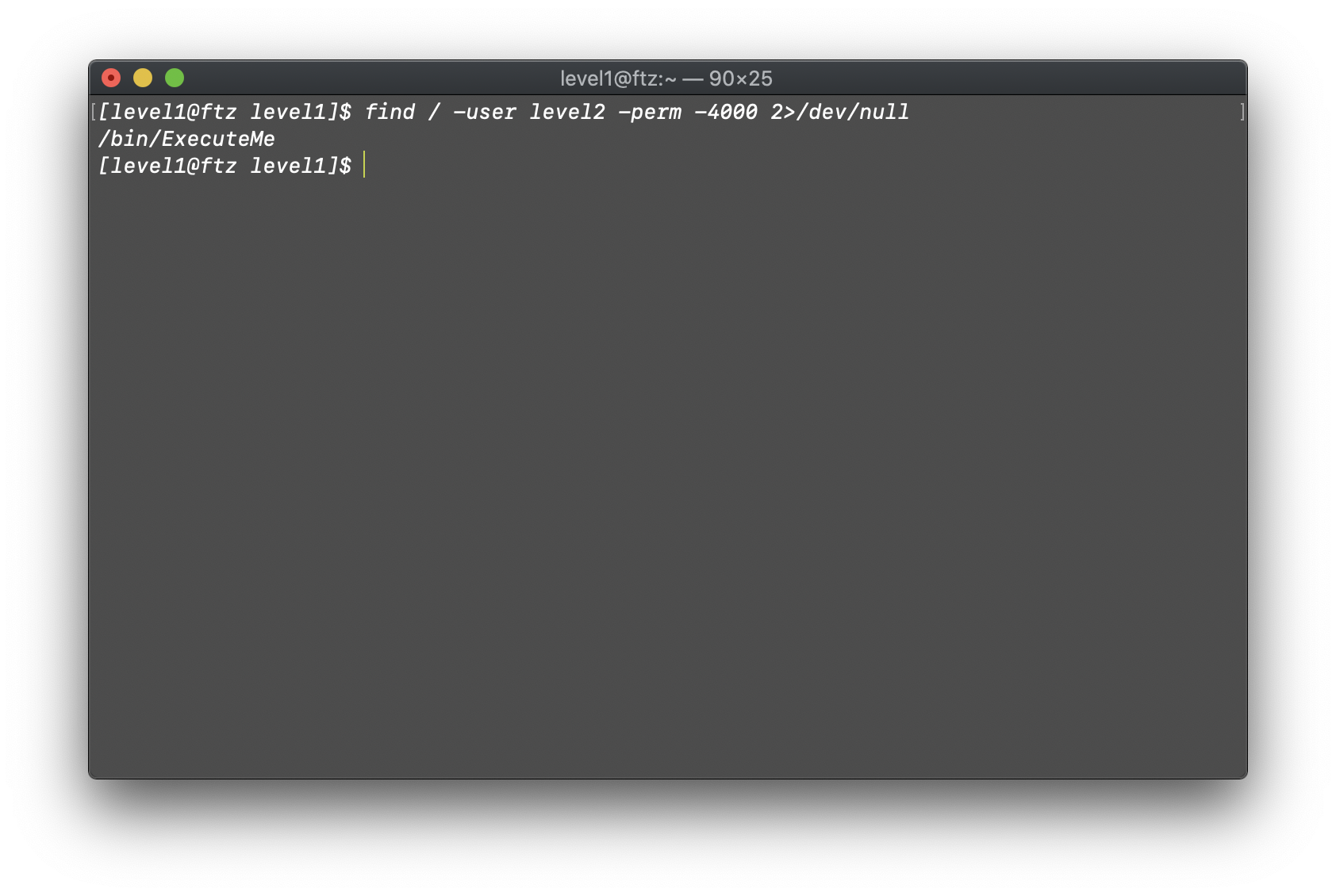 말 그대로 level2 권한에 SetUID가 걸려있는 파일을 찾으면 된다.