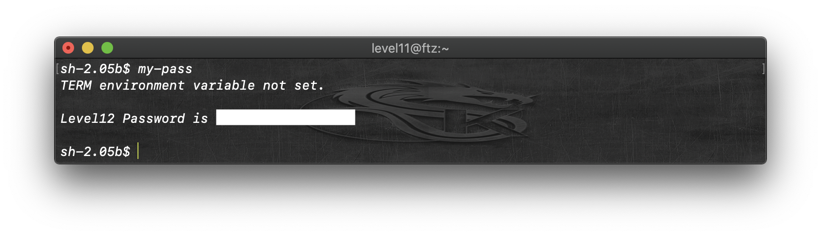 그러나 level12의 SetUID가 걸린 프로그램이다보니 권한이 거부되었다.