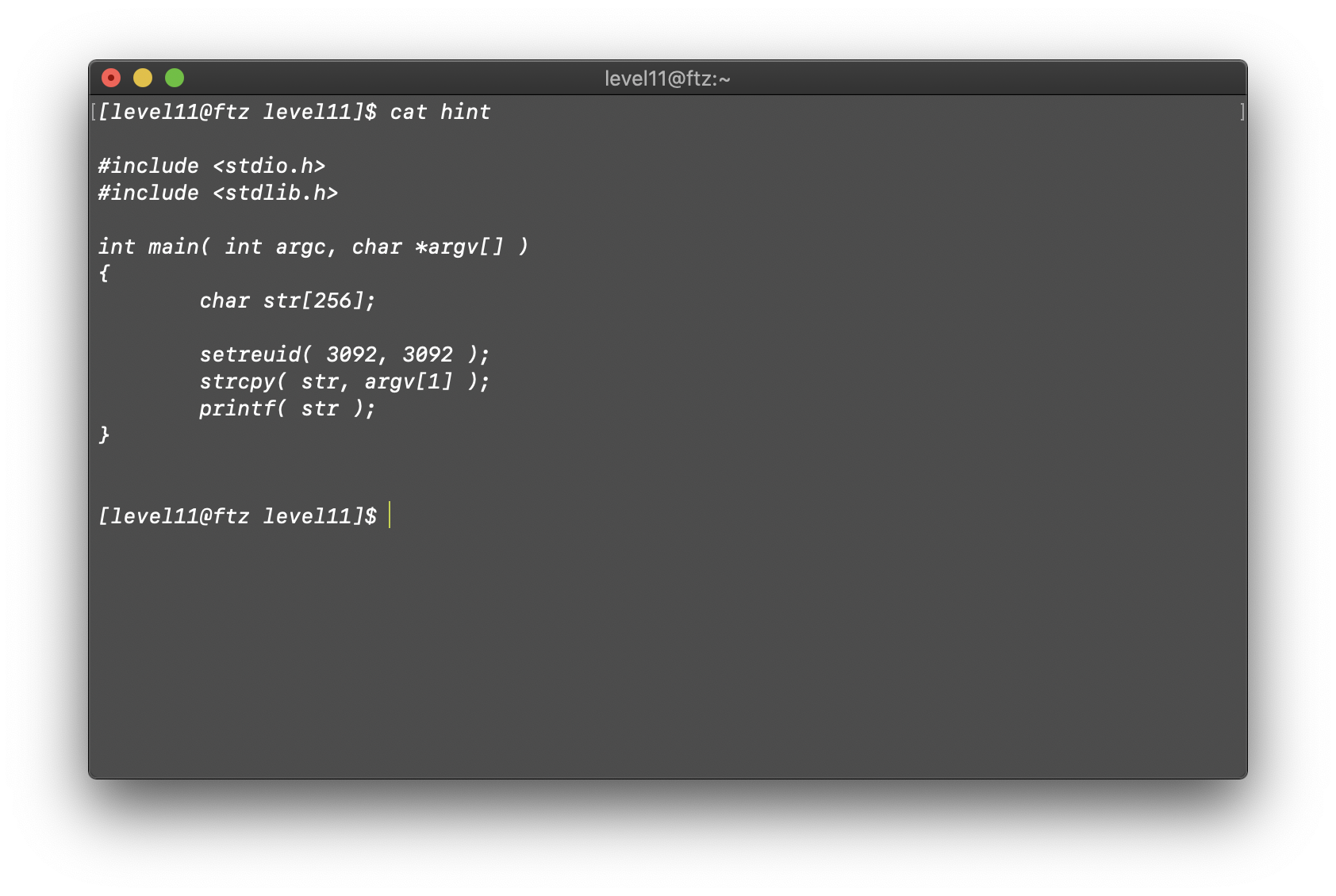setreuid( 3092, 3092 ); //level12 권한 부여