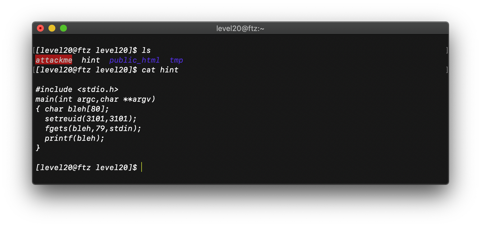 FTZ - level19 [Buffer Overflow 𝜇] (0) | 2020.08.28 |