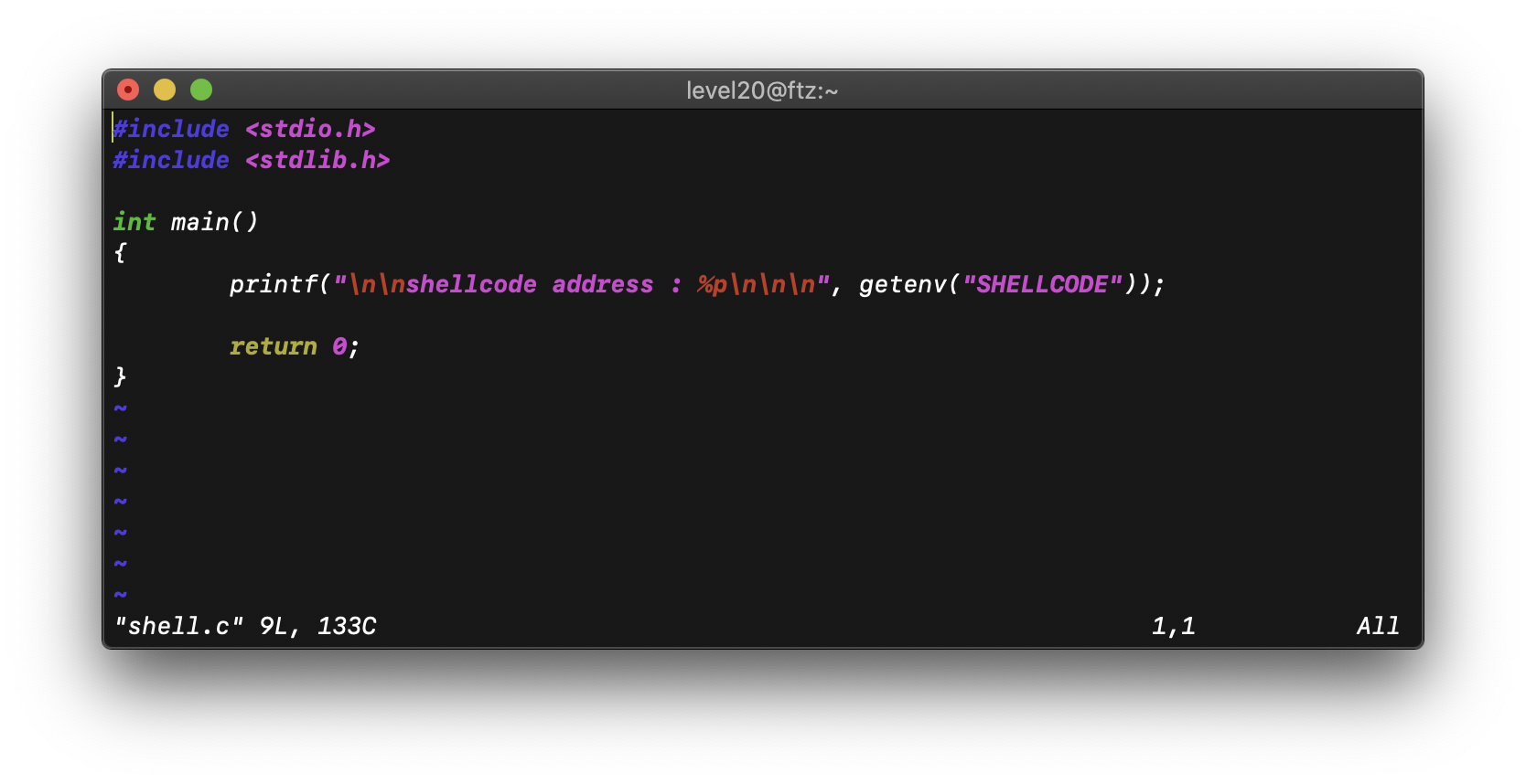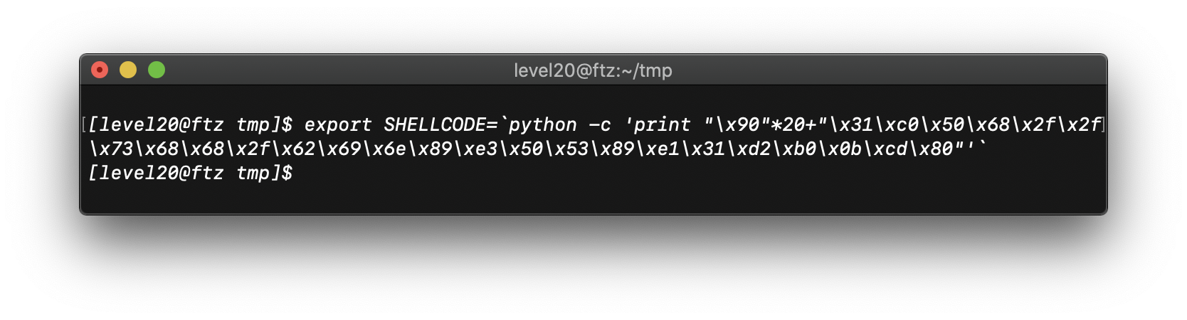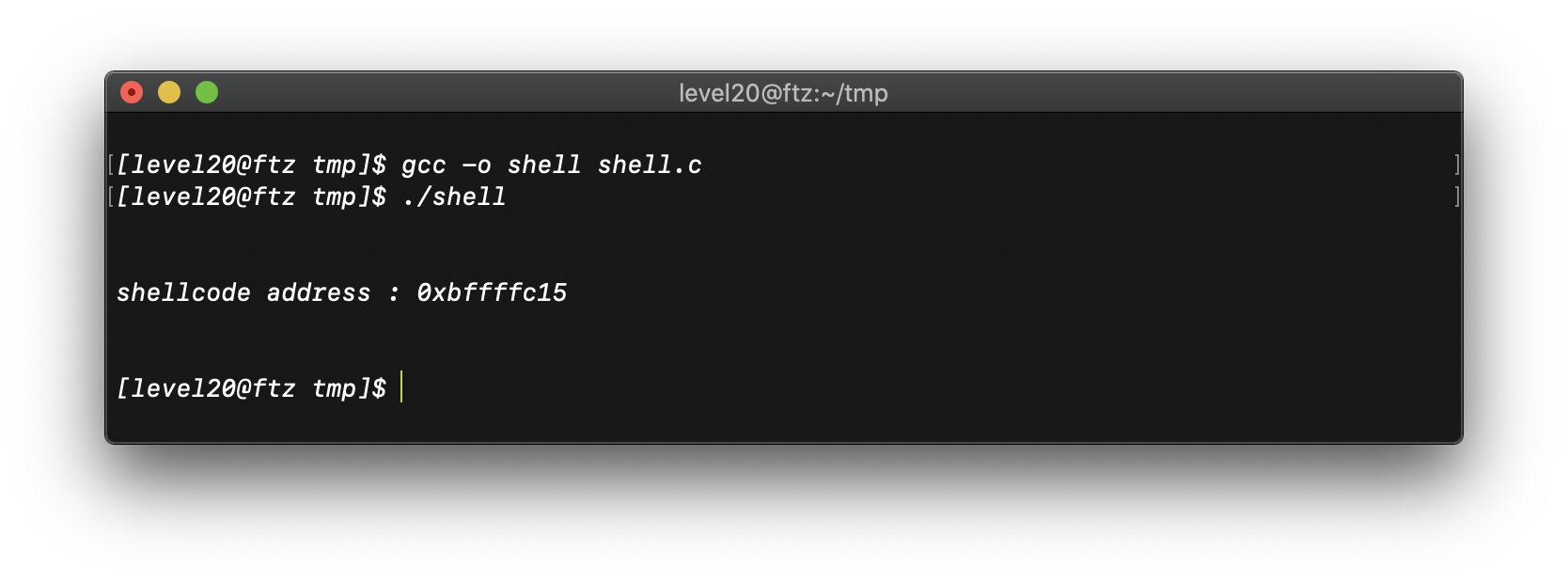 shellcode의 주소를 출력해줄 프로그램을 만들고 실행하자.