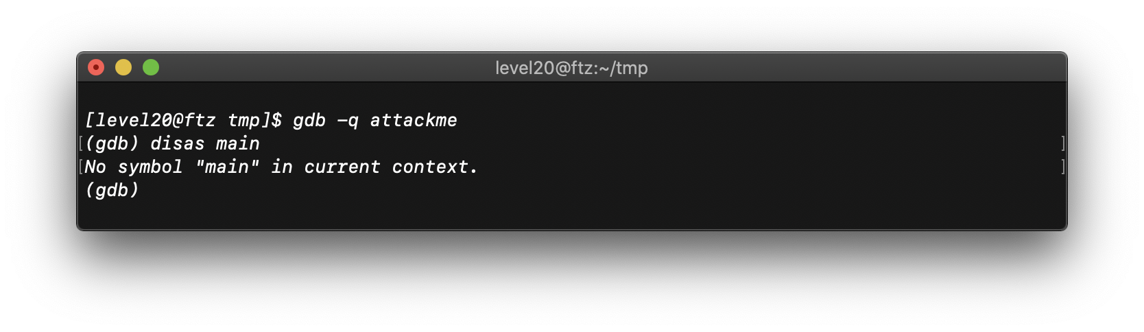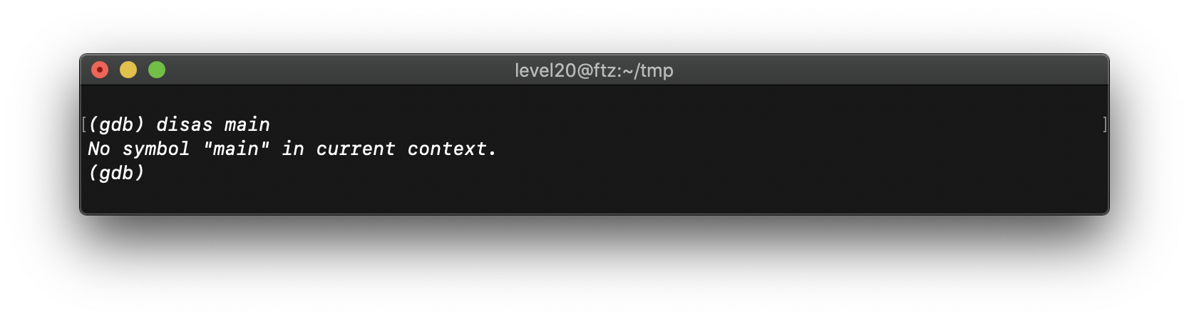 main 함수 부분의 symbol 이 날라가서 gdb로 분석을 할 수 없다.