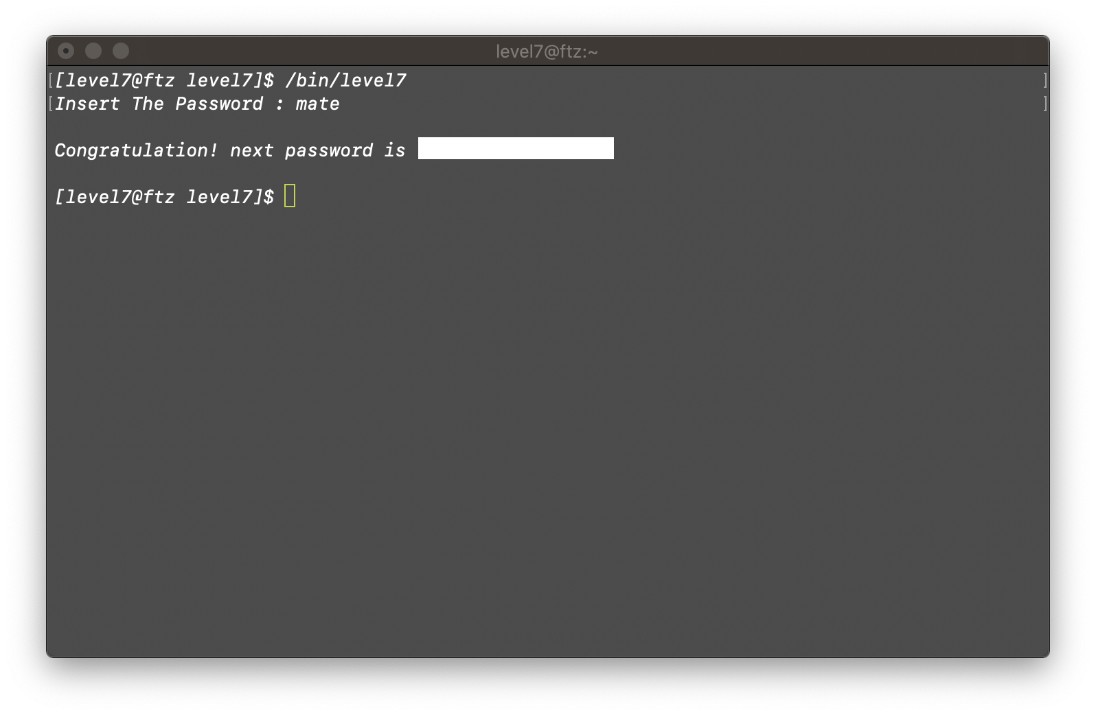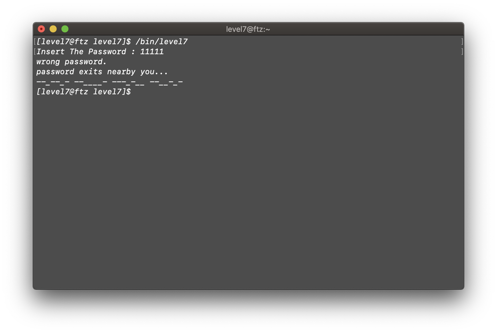 /bin/level7 명령을 실행하면, 패스워드 입력을 요청한다.