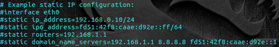 static ip_address, static routers, static domain_name_servers 부분의 주석을 삭제하고,