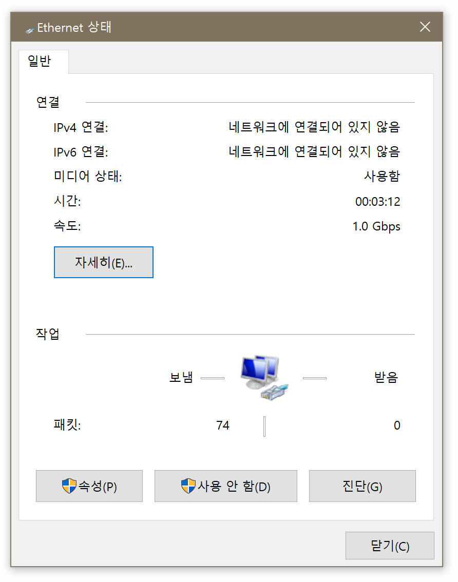 설정 - 네트워크 및 인터넷 - 이더넷 - 어댑터 옵션 변경 - Ethernet