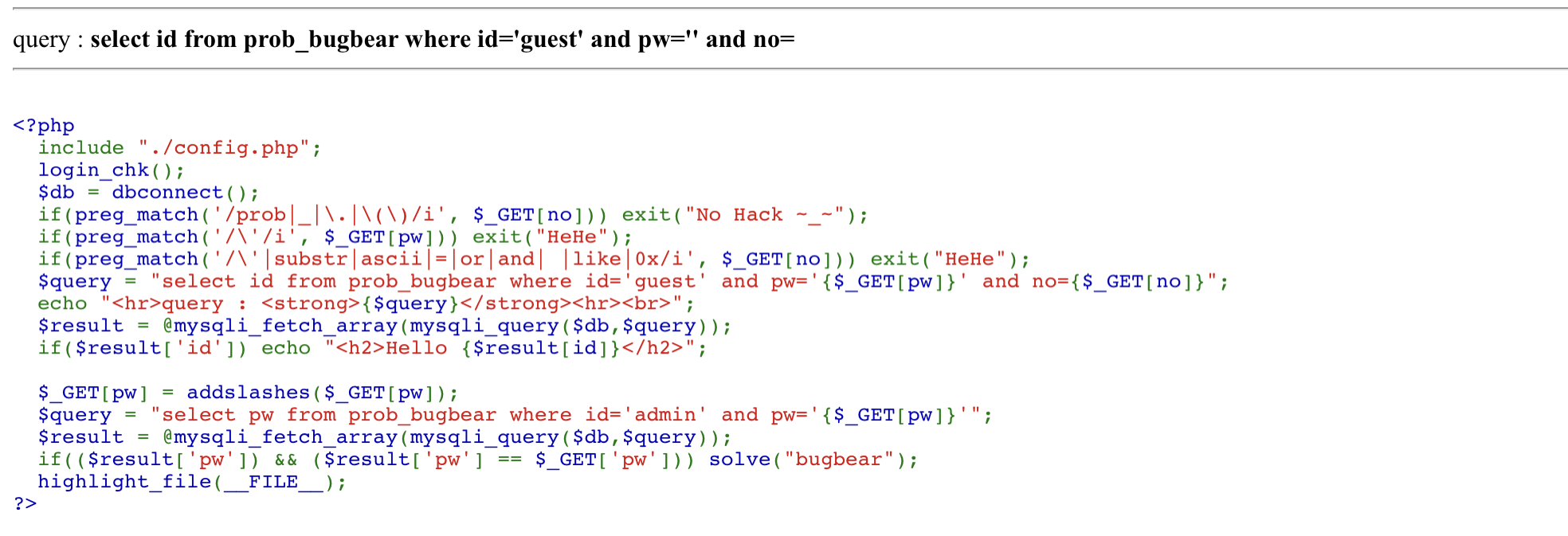 5 org_url = "https://los.rubiya.kr/chall/bugbear_19ebf8c8106a5323825b5dfa1b07ac1f.php"