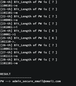 무려 51ms 밖에 소요되지 않았다. 이것으로 우리가 체크해야할 부분은 끝났다고 본다. 기존에 하던대로 email의 length와 Brute Force를 이용한 공격밖에 남지 않았다.