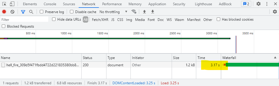 위와 같이 query를 전달했을 경우, 노란색으로 밑줄 친 영역에 보이듯이 응답시간이 3.17초라는 시간이나 걸린 것을 확인할 수 있다. 의심스러운 부분이 있기 때문에 조건문이 참이 아닐 경우도 해보겠다.