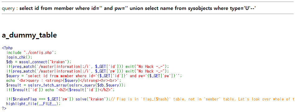 다른 테이블을 이용하는 내용이 다시 나왔다. 지난 문제에서는 Error Based SQL Injection 을 이용하여 table 명과 pw를 leak 하였다. 이번에는 Error Based 는 아니지만 echo 명령어가 있기 때문에 이를 이용하여 table 명과 pw를 leak 할 수 있을 것 같다.