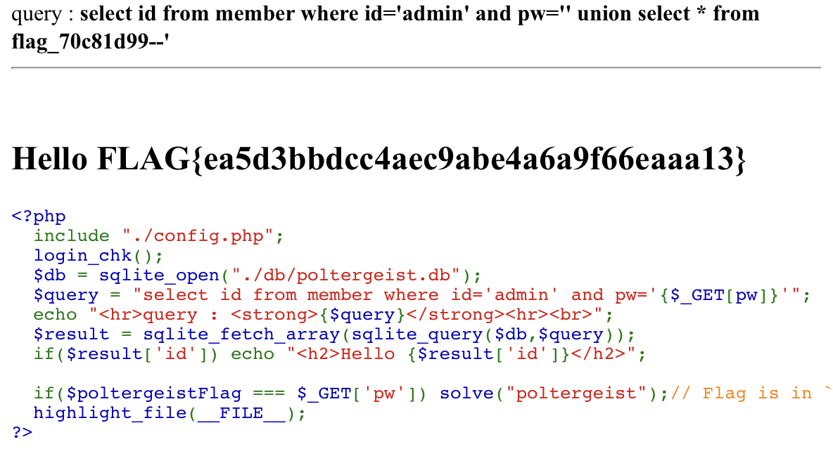 // Flag is in `flag_{$hash}` table, not in `member` table. Let's look over whole of the database