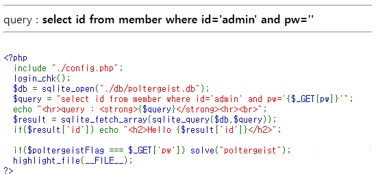 MySQL에서는 information_schema 라는 메타데이터를 사용하였다. SQLite 는 sqlite_master 라는 메타데이터를 사용한다. sqlite_master를 이용하여 테이블의 이름을 불러와 보자. group_concat 함수를 사용하면 원하는 데이터를 모두 출력할 수 있다.(https://lucvs.xyz/entry/Real-World-SQL-Injection, 참고)