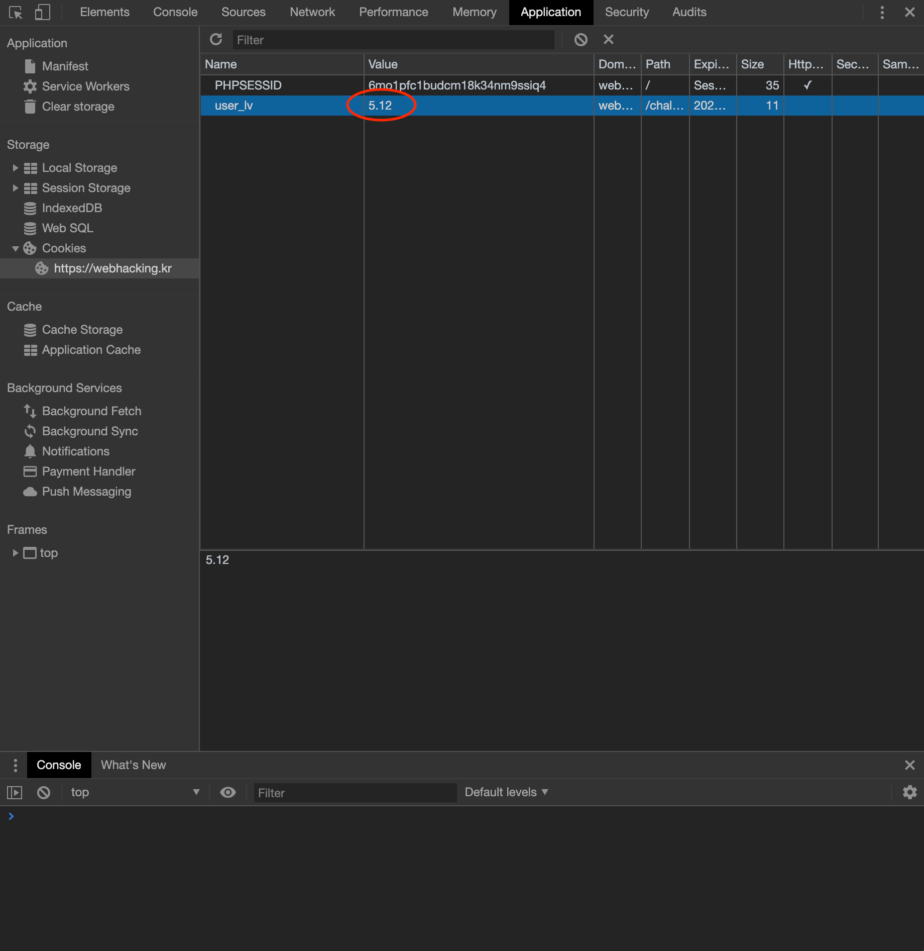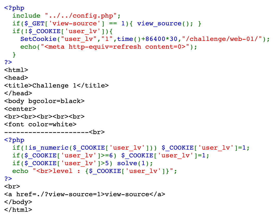 목차 php, html 언어로 이루어진 코드이다. $_COOKIE[ 'user_lv' ] ≥ 6 이면 $_COOKIE[ 'user_lv' ] = 1 로 초기화하고, $_COOKIE[ 'user_lv' ] > 5 이면 solve(1)로 문제를 해결할 수 있는 함수가 실행되는 것 같다. 따라서 쿠키값을 변조하여 5 < x <6 인 값을 user_lv 에 넣어주면 될 것 같다. 공유하기 게시글 관리 Lucvs 저작자표시 (새창열림) 목차 목차 닫기