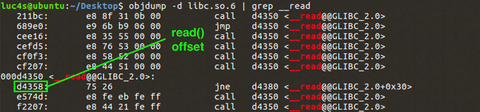#read 함수의 실제 주소를 leak 함으로써 libc base를 구한다.