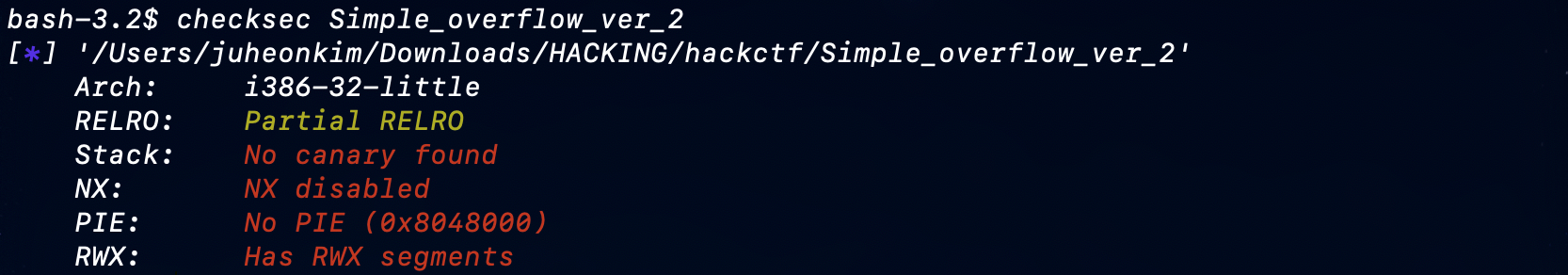 Simple_Overflow 답게 보호기법이 아무것도 적용되어 있지 않다.